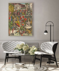 Albrecht Dürer: „Apokalipsa – karta 1 – Tortury św. Jana Ewangelisty (wersja koloryzowana)” – renesans północny print technology, archival quality, lifetime …
