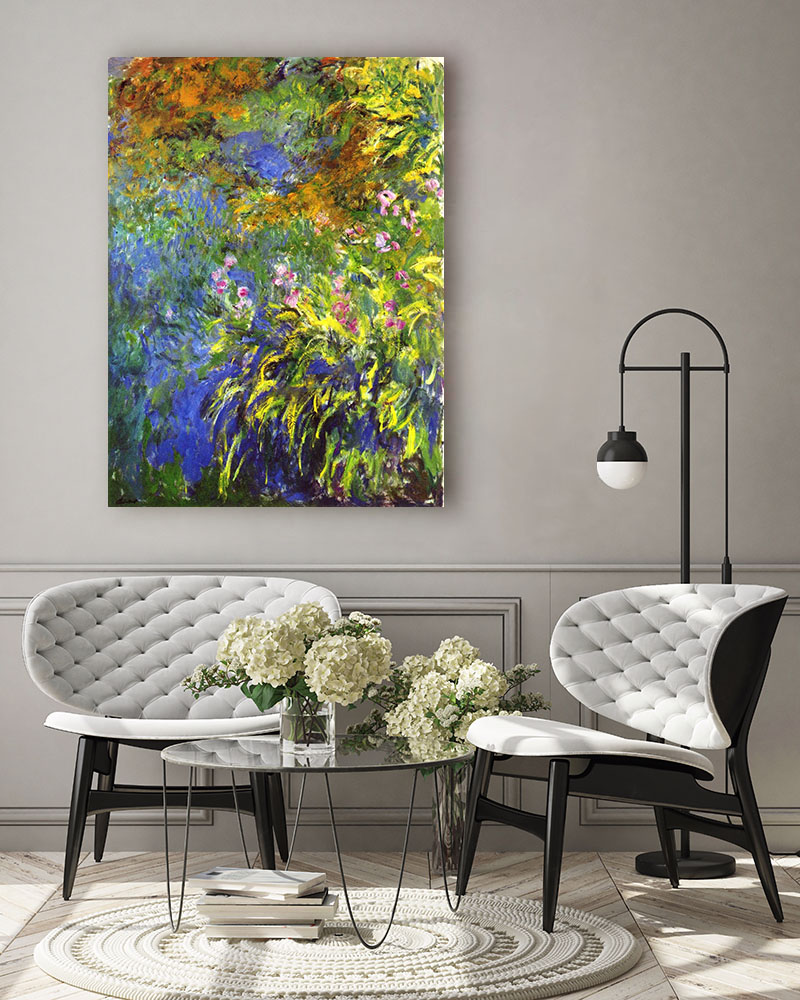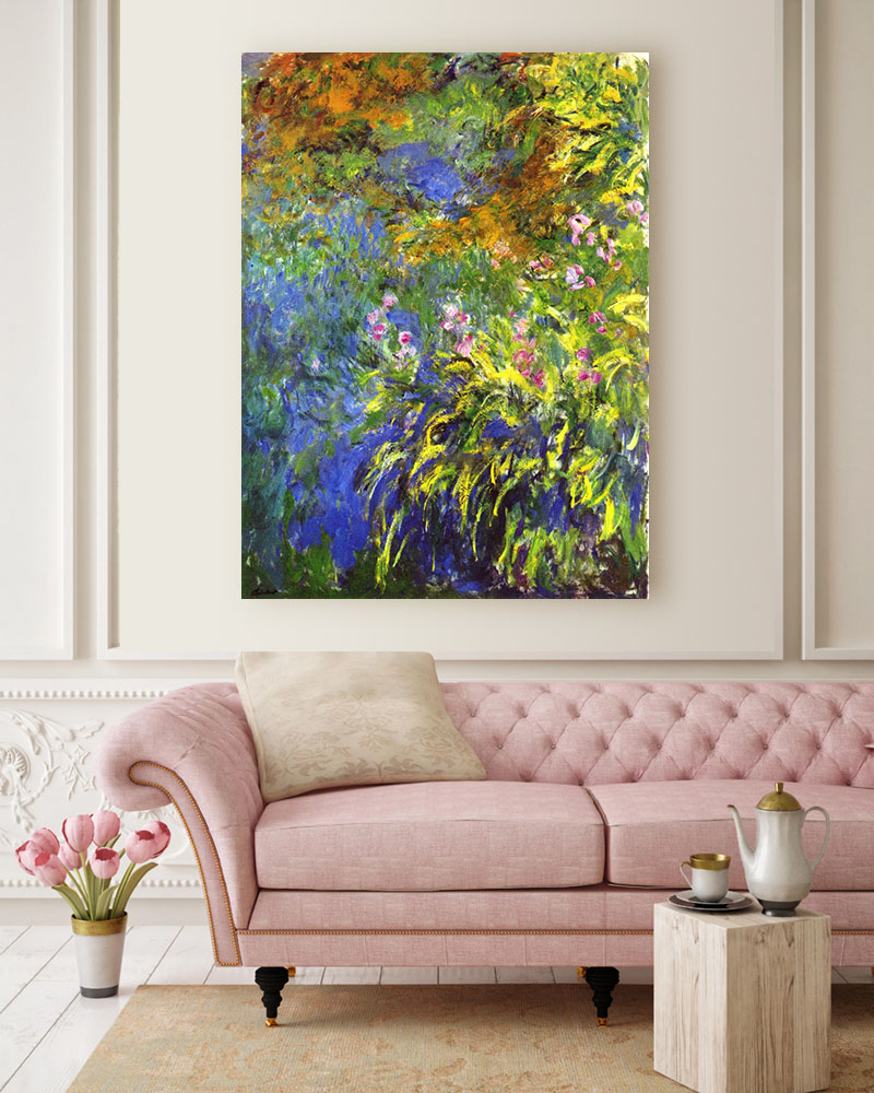 Claude Monet „Irysy” – Giverny na płótnie muzealnej jakości. Profesjonalny druk premium. Bestseller!