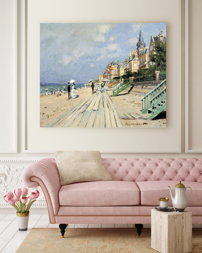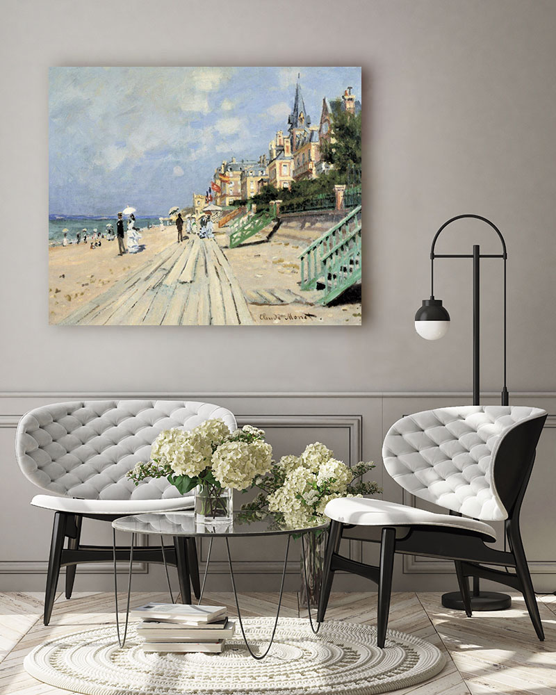 „Promenada na plaży w Trauville” Claude Monet – oryginalna światło na płótnie premium. Dostawa 24h. Fast delivery!