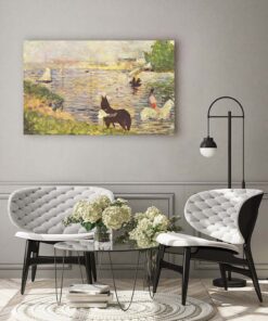 Georges Seurat „Konie w wodzie” – pointylistyczne arcydzieło na płótnie premium. Neoimpresjonizm najwyższej jakości.