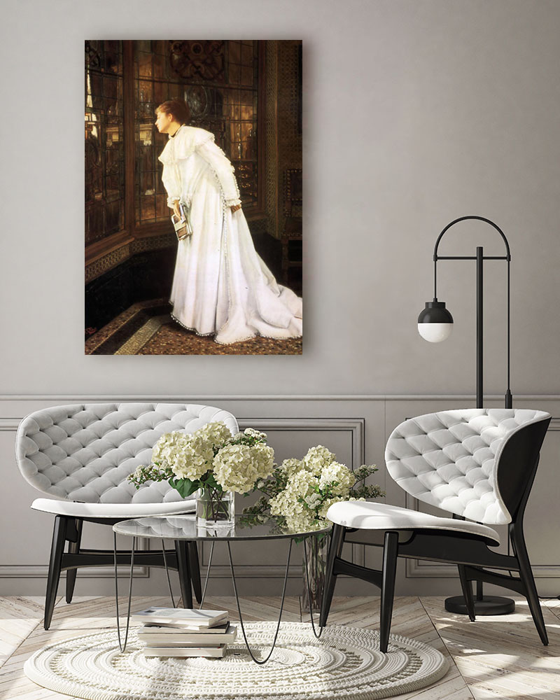 James Tissot maluje „Oczekiwanie” – mistrz pełna emocji na płótnie premium. Sztuka żyje.