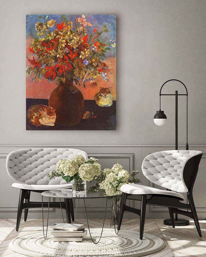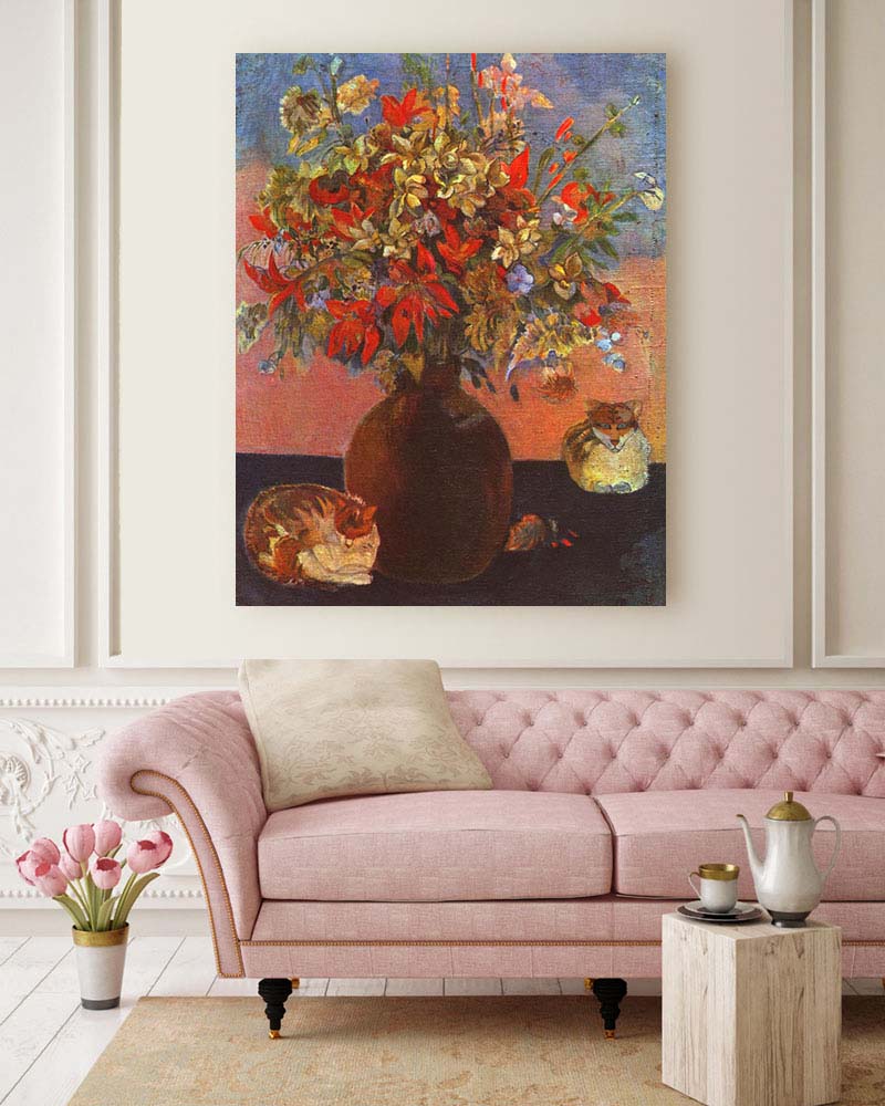 Paul Gauguin „Kwiaty i koty” – malarstwo na płótnie muzealnej jakości. Profesjonalny druk premium. Bestseller!