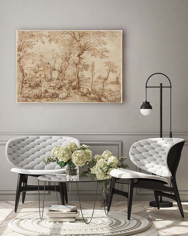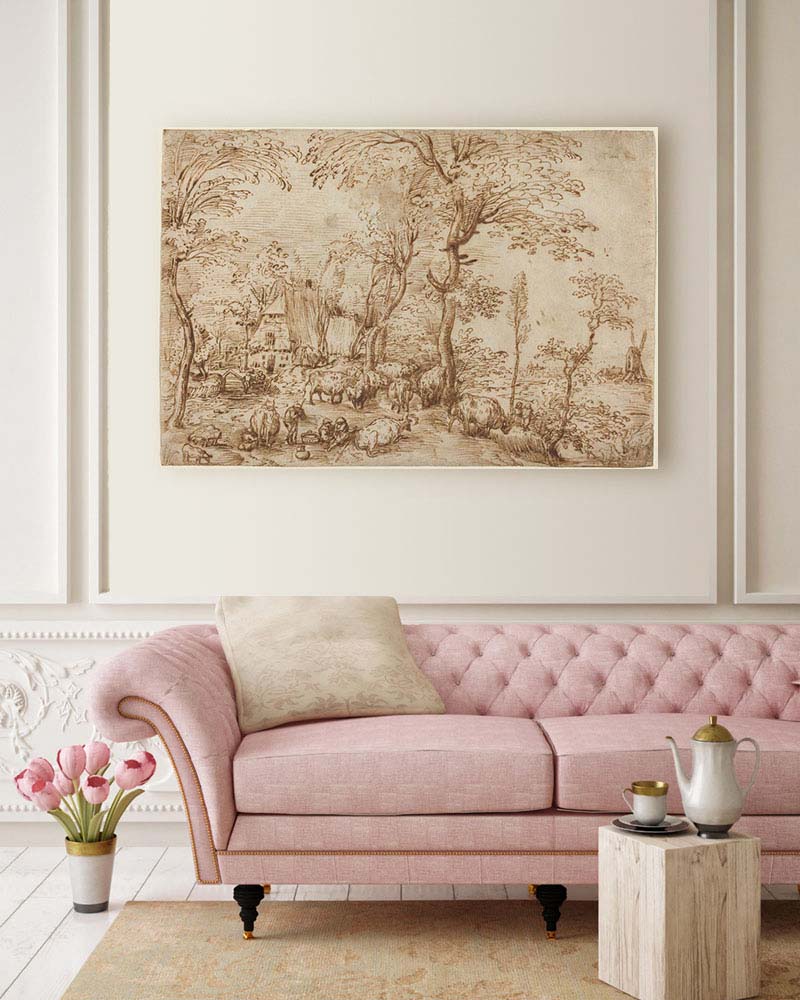 Pieter Bruegel „Chłopi i bydło w pobliżu chaty” – mistrz na płótnie muzealnej jakości. Profesjonalny druk premium.